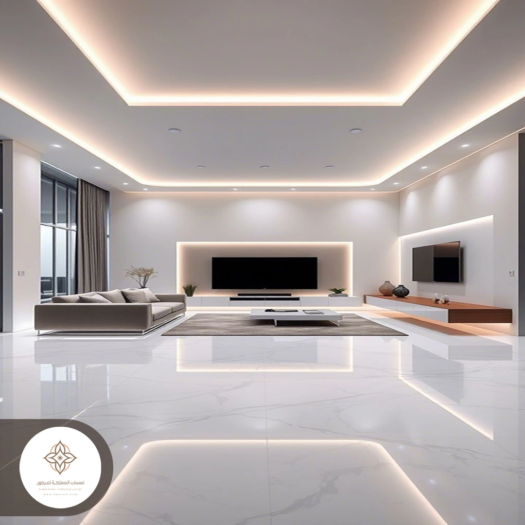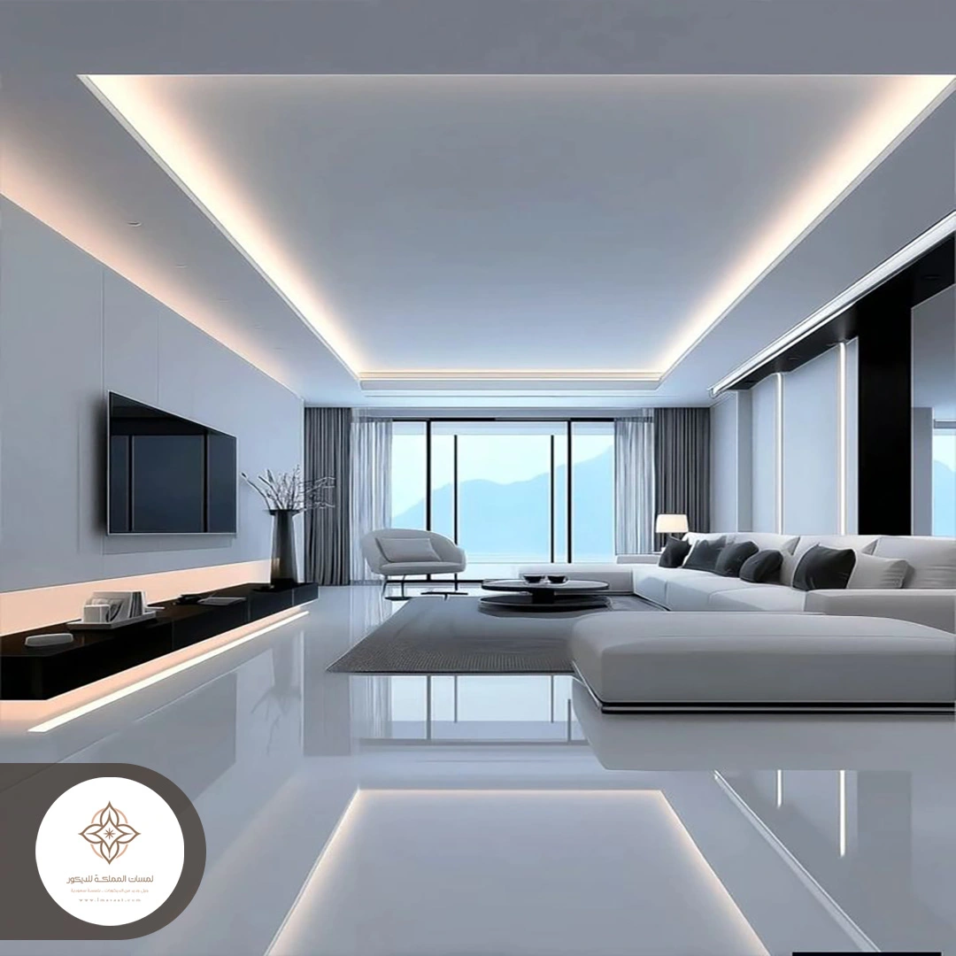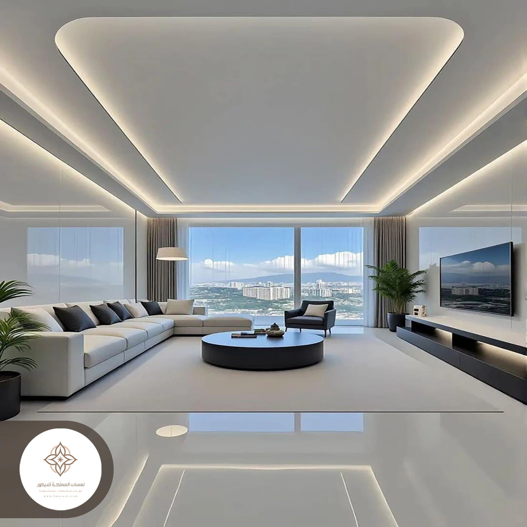 | أسقف المستويات | طبقات متدرجة فوق بعضها بارتفاعات مختلفة. | يعطي فخامة عالية جداً، ويسمح بدمج أكثر من نوع إضاءة. |