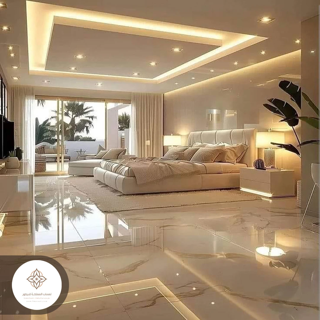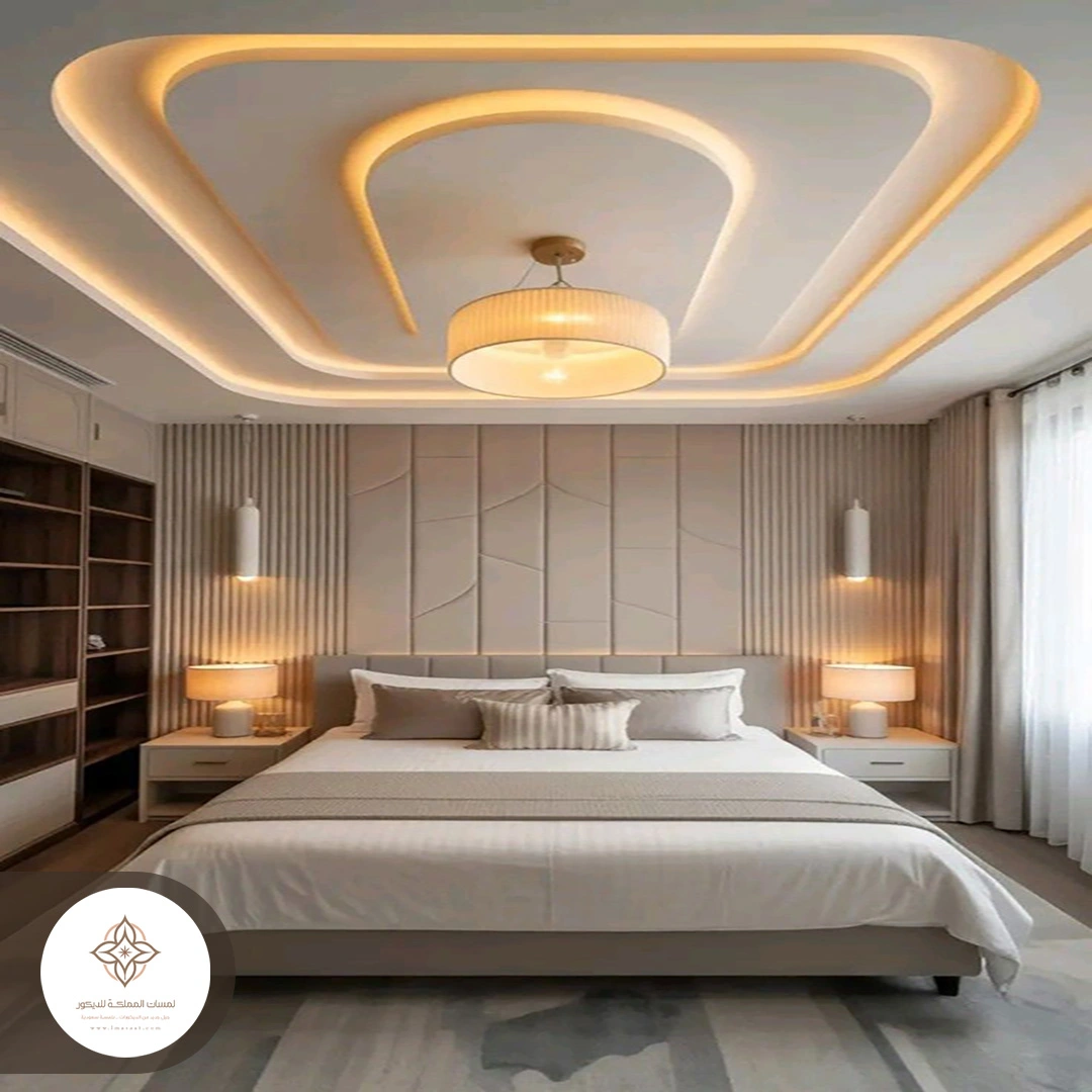 | بيت النور | مستويان مع تجويف داخلي لإخفاء إضاءة الـ LED. | توزيع إضاءة ناعم ومريح، ويضيف عمقاً وارتفاعاً للسقف. |