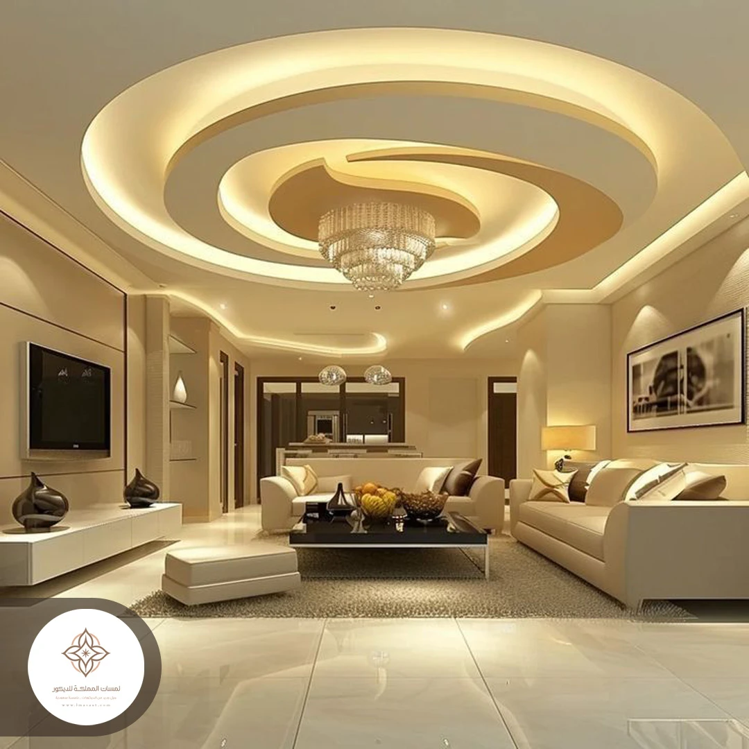 صالتك هي عنوان فخامتك اجعلها تتميز اليوم بأحدث تصميم اسقف جبس للصالات من خلال التعامل مع فريق لمسات المملكة للديكور !
