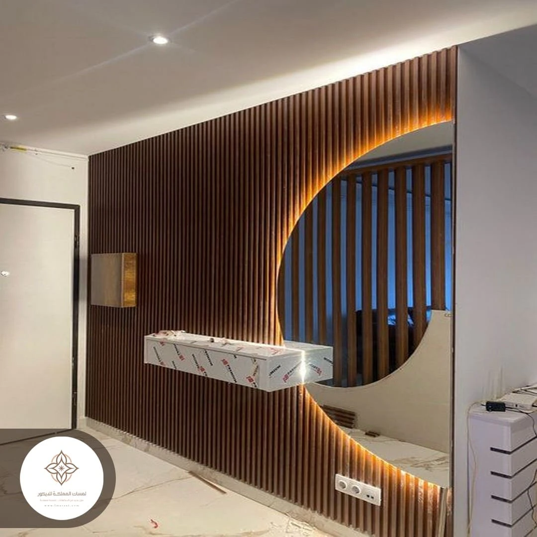 يُختار المكان الأمثل على الجدار لتحقيق أقصى انعكاس للإضاءة وإبراز جمال الديكور.