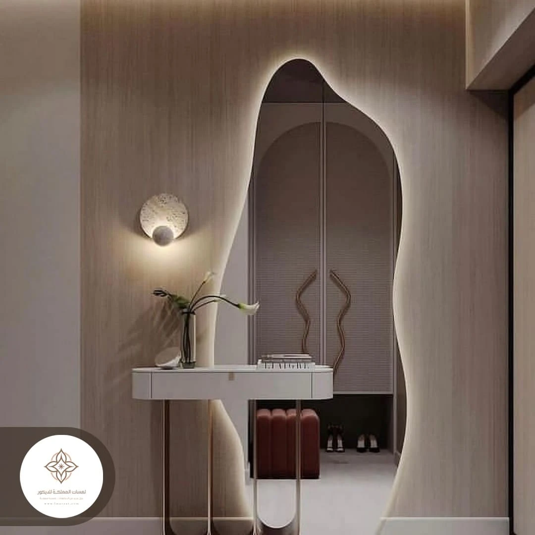 يساهم ديكور المرايا مع الإضاءة في إبراز شكل المرآة، وتعزيز عمق المكان، وخلق أجواء مريحة ومضيئة بدون إزعاج بصري. كما أن المرايا المضيئة تضيف طابع فندقي فاخر يناسب المجالس، وغرف النوم، والمداخل، وحتى الحمامات. وتكمن أهميتها أيضاً في التفاصيل الدقيقة التي تجعل المكان يبدو أكثر تنظيما وأناقة.